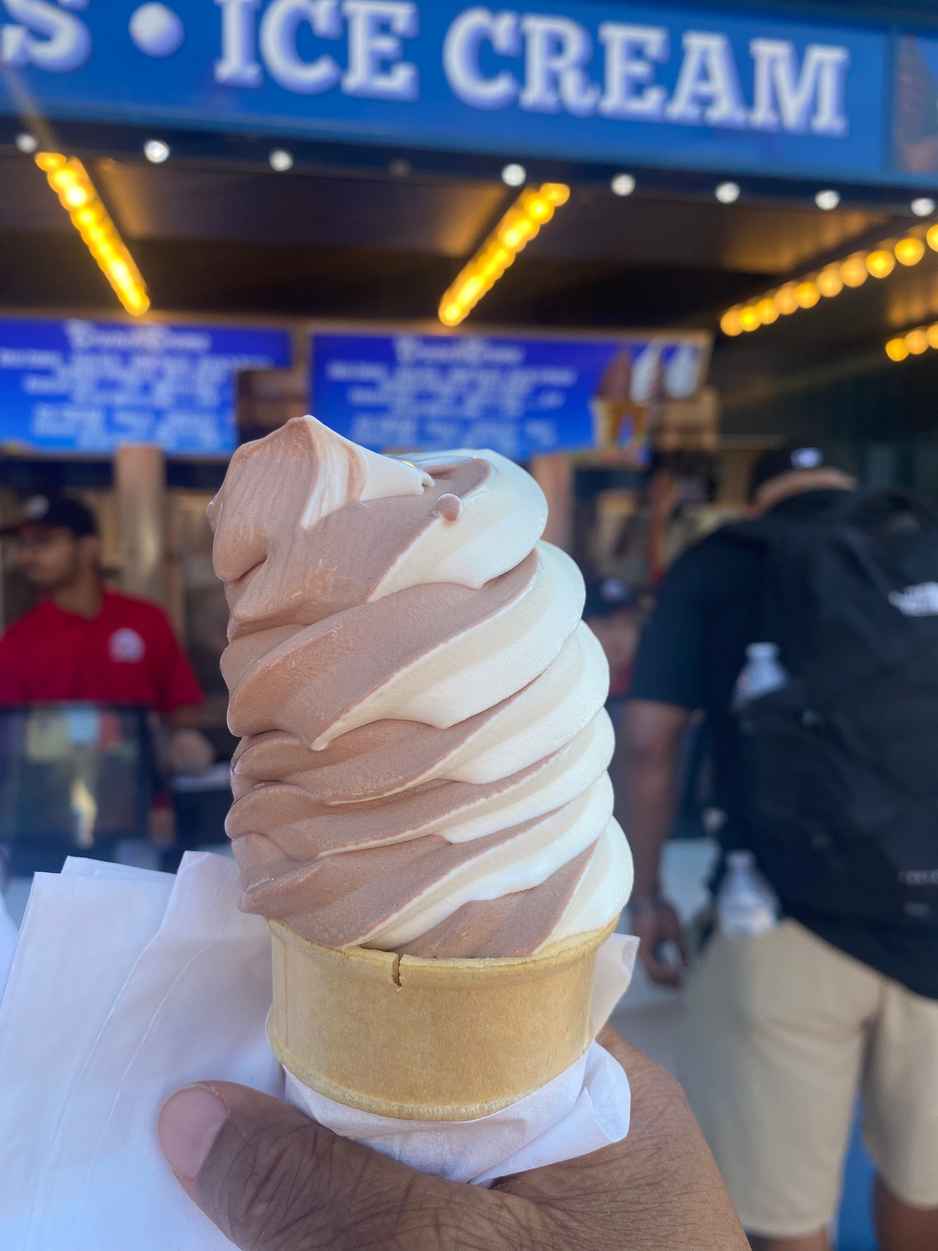 I bought ice cream because why not? Each time cost about $6.50. I bought from similar shops and got a vanilla and chocolate cone the first time and an orange-flavoured ice cream the second time.